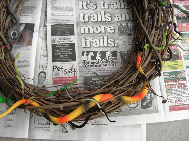 Now that I'm looking at the pictures on the computer I realize that I need some more snakes! More big snakes. But I love it! It's fun. I think that Halloween is one of the funnest holiday's to decorate for.